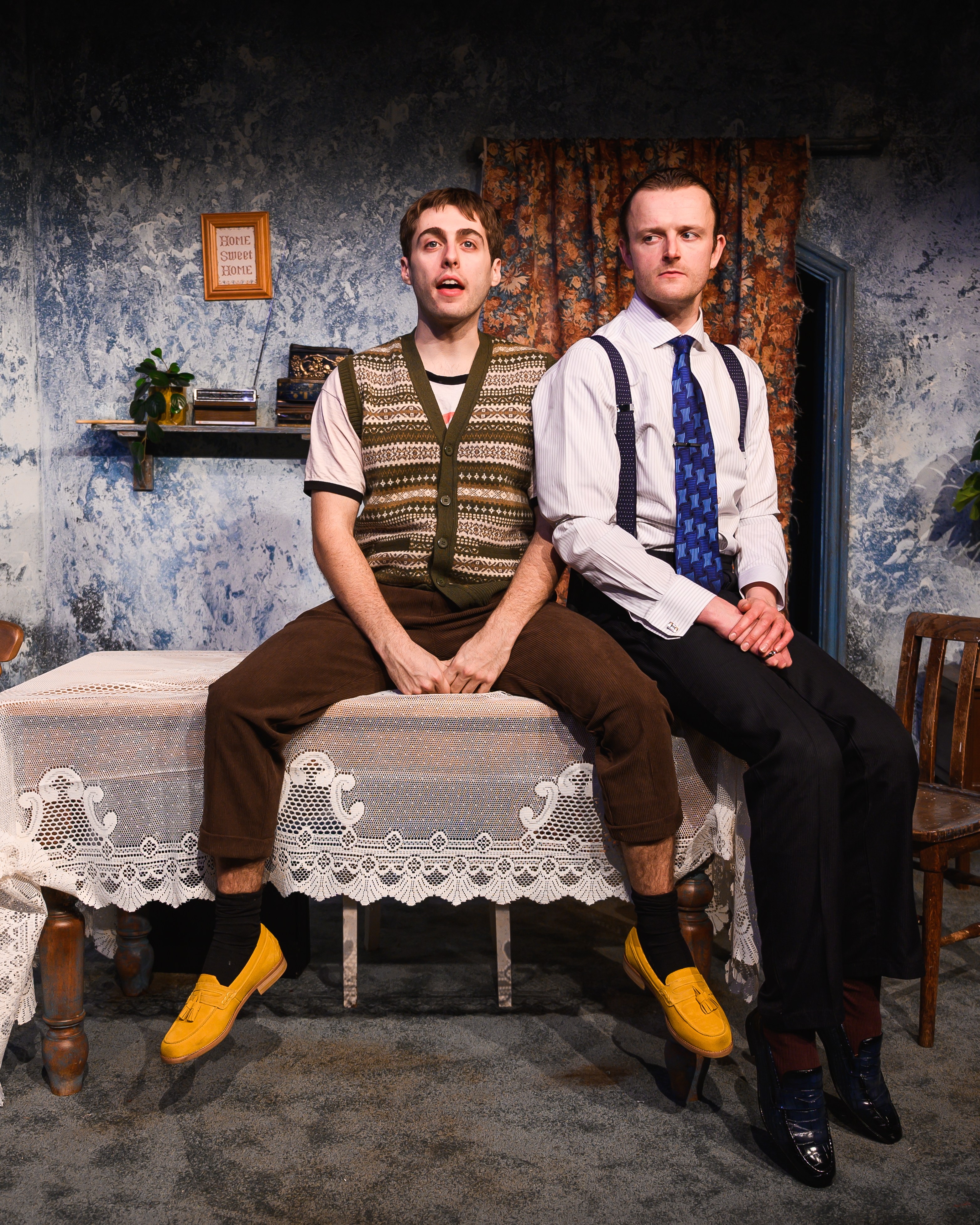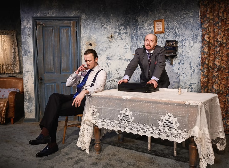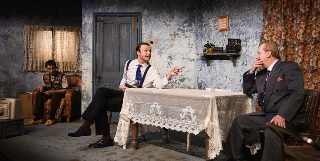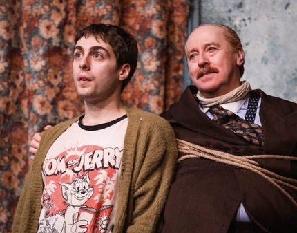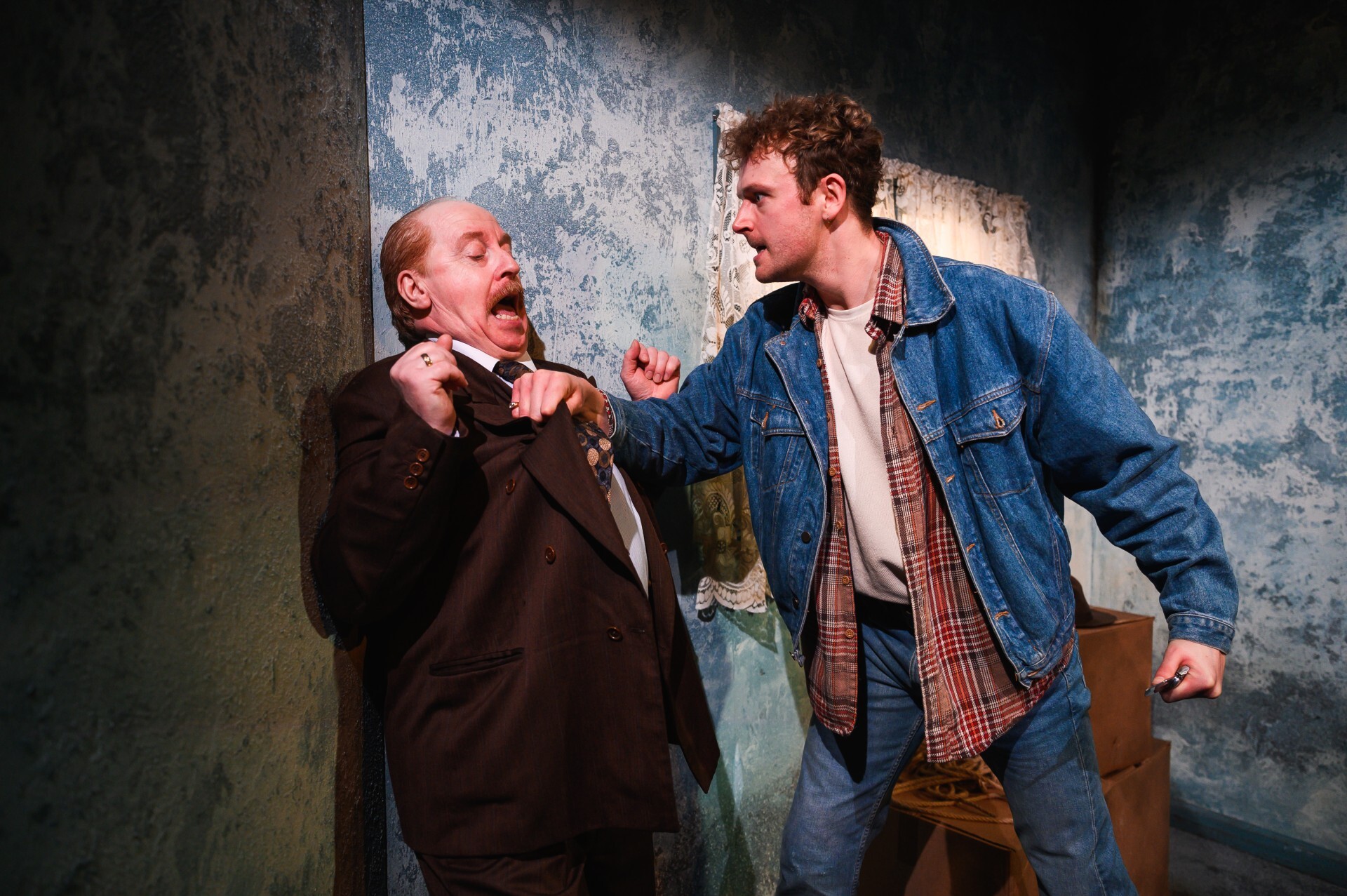 Two brothers, yes orphans, are ensconced in a decrepit house – the illiterate Phillip (Fred Woodley Evans) is too scared to go outside, while the older and aggressive Treat (Chris Walley) is hostile to society, venturing out just for petty-thieving, to steal wallets and buy tins of tuna and Hellman’s mayonnaise. This minutiae of a daily existence is another Pinter trait. One day he brings home Harold (Forbes Masson), an unknown stranger with a briefcase, to keep hostage. And of course there is a turn-around power struggle with Harold (surely no homage to Pinter!?) surprising both with support, kindness, moralising…and a gun.