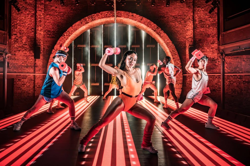 The cast are well drilled, stylishly designer-dressed, and exposed like catwalk creatures, with Gucci, Dolce & Gabana, and other brands tossed into the decadent mix. But then glimpses of their real lives show the reality behind the surface gloss. Arty Froushan, recently seen as a boyfriend in The Line of Beauty (also at the Almeida) confidently holds the centre stage here, perfect as Patrick Bateman – arrogant, insensitive, boastful, and increasingly insane. His women are a good match – Asha Parker Wallace plays his devoted secretary; Emily Barber is his persistent fiancée; Zhegng Xi Yong is a besotted gay admirer; and the athletic ensemble all morph into a multitude of designer yuppie stereotypes.