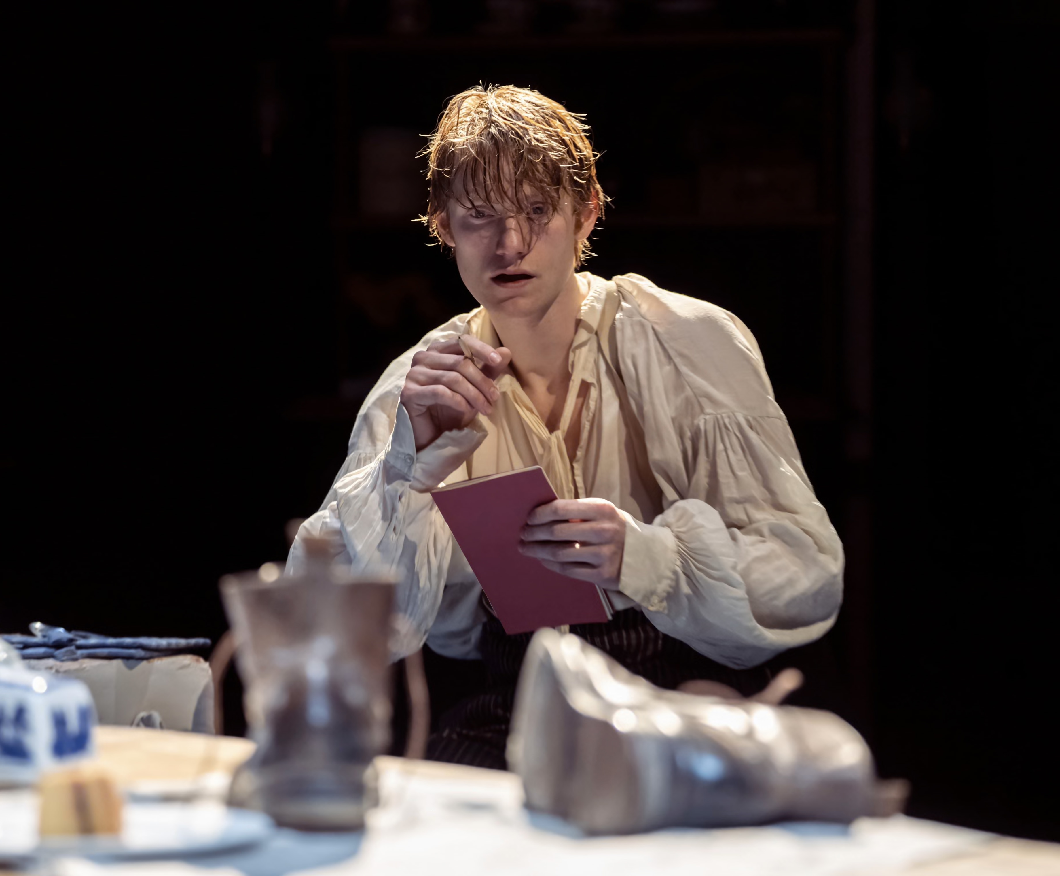 It’s referenced very heavily in the almost unbearably moving fourth scene of Luke Norris’s play, when emotional Robert Aramayo tries to finish reading it to his wife, played by Rosie Sheehy. Almost unbearable…but we’d already weathered – just about – the third scene which had reduced a woman sitting behind me to audible sobbing. She wasn’t alone; someone on the other side of the theatre provided stereophonic support.