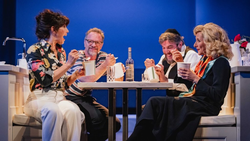 They all agreed that the play had changed tremendously since the first preview. First of all, there was laughter – there’s no audience response in a rehearsal room. Then there was a piece of furniture that they had to get rid of, as it was heavy and awkward. Meanwhile, the performances had grown in confidence, and the obvious bond between the actors had strengthened. (Nevertheless, a friend who’d seen an earlier performance had told me that already it was in perfect shape, and that it was a winner).