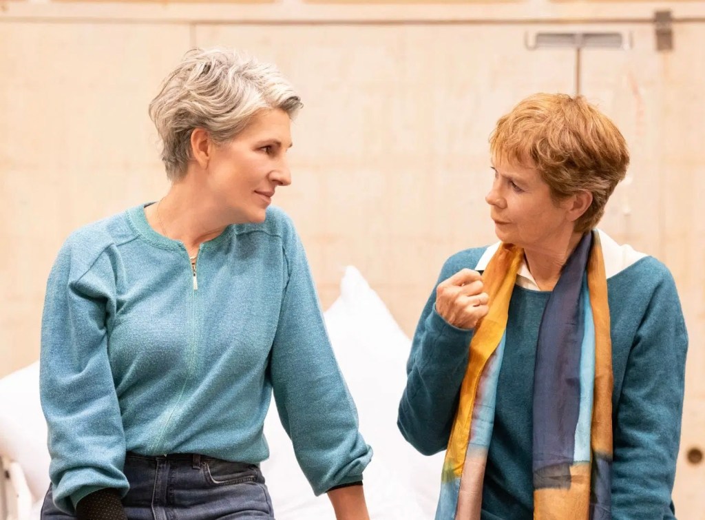 It’s clearly an emotional topic, and it seemed a risk to cast two actresses well-known for their comedy performances as mother and daughter. No, Anna, said, Tamsin Greig and Celia Imrie were her first choices: as well as being a personal drama, it’s a funny play. Celia interjected that Anna sold it to her as a love letter to her mother. Tamsin agreed and said that death is an important subject, and added that if she goes to a party and doesn’t talk about death, it’s a wasted evening! It was clear that both actresses were in comedy vein; Tamsin unable not to be funny, and veering from earnestness to irony within a sentence, and Celia reacting to any prompt with a humorous aside. Tamsin continued that when she goes out, she still thinks she’s 17; in our minds, we’re always at the age where we felt most alive.