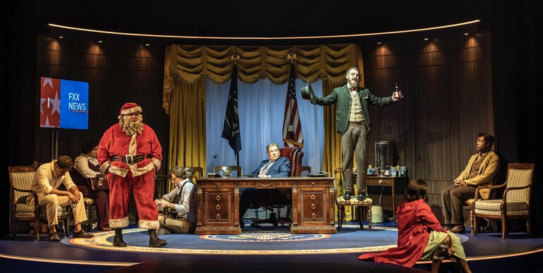 At the Southwark Playhouse we caught an unusual based-on-the-film musical with Jamie Parker as the titular lead in The Curious Case of Benjamin Button. This one deserved to transfer to the West End for a larger audience, but that all too rarely happens to shows from outside the West End. The Young Vic this year tempted us with two promising plays, Further than the Furthest Thing and Pinter’s The Homecoming. More locally, for me, we have visited Kingston’s Rose Theatre for Miller’s A View from the Bridge, and the tiny Orange Tree in Richmond for She Stoops to Conquer, set-in-the-round with the audience seated-in-the-set which was appropriately dressed for Christmas.
