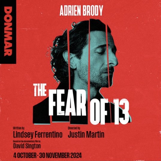A much larger than usual crowd waited for the Q&A following the Supporters’ performance of The Fear of 13 at the Donmar. It had been a tense, absorbing evening, with gasps as the story unfolded, and the audience had been engaged throughout. Clearly they hoped to see Adrien Brody as himself, and not as Nick Yarris, whose story the play is based on.