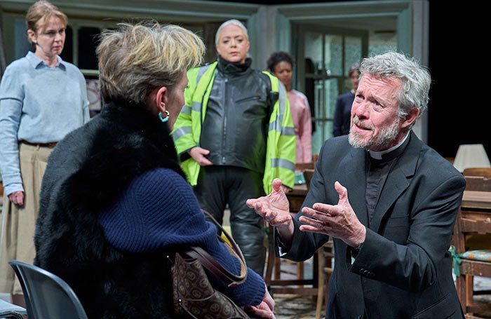 Clearly the slope, and the snow in performance, took getting used to. Unfortunately, after the first two previews, performances had to be cancelled, as one of the cast tested positive for Covid. For the first time, the Donmar has now engaged a male and female understudy, so that the show can go on.