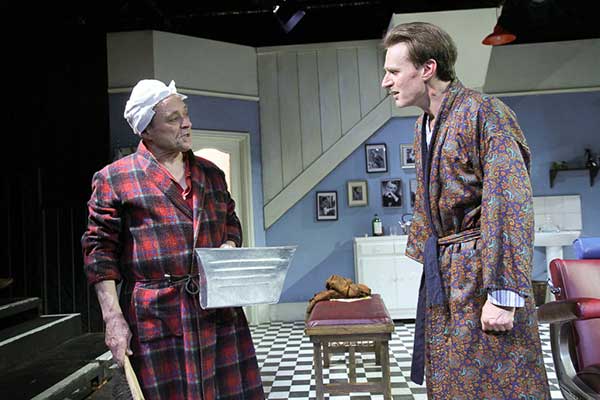 Did we enjoy it? The couple are following their Sunday afternoon rituals in Harry’s saloon, buffing fingernails, preening in front of the mirrors, listening out for the unseen upstairs neighbour. Their relationship rests on a slightly rocky basis of scratchy banter, varied reminiscences and shared fears of discovery by hostile authority. In a protracted ebb and flow, Charlie agonises in anticipation of facing court for sitting in drag on the lap of a man in the pub, while Harry worries that a balding barber is a bad advert for his trade. And Charlie’s purported daughter is coming to visit. While these superficially comic threads are played with, a darker tone emerges as Harry winkles out of Charlie secrets which seem to imperil their 20 years together.