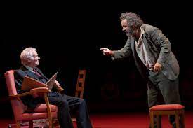 This presents a number of problems, and the first is the uneasy fit between the framing section and the actual play. Then – dare I say this? – most of the cast are old, and while they have earned their stripes over the years, they do show their age. It doesn’t help that some of them confusingly play several roles, of varying ages, and in a play that already lacks narrative and is composed of vignettes, this bleeds any drama or coherence from the performance.