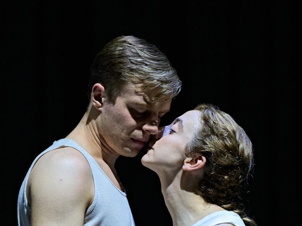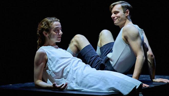 Rupert Gould directs with sensitivity, simplicity and flare. The set is a steep flight of steps, black but dazzlingly lit; the costumes are semi-period, in grey; the tone is confrontational and emotive; the movement is an exercise workout that’s highly energetic and visually stunning.