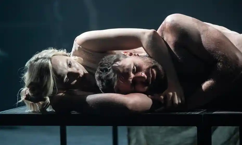 We arrive at the interval at the closet scene and the murder of Polonius before an oddly composed Gertrude (Tara Fitzgerald). And then something strange happened. Ms Jumbo and Hamlet are absent from the action for quite a long stretch soon after the start of Part Two, and I became aware of a sudden loss of energy in the production. I missed Joseph Marcell as Polonius; he’d made this tiresome character rather endearing. I noticed that the supporting players were undercast; Taz Skylar (Rosencrantz). and Joana Borja (Guildenstern) made an airhead duo, and even Adrian Dunbar (Claudius) and Tara Fitzgerald delivered their lines without bringing any characterisation to this important couple. However, Ms Fitzgerald gave a very good account of Ophelia’s death.