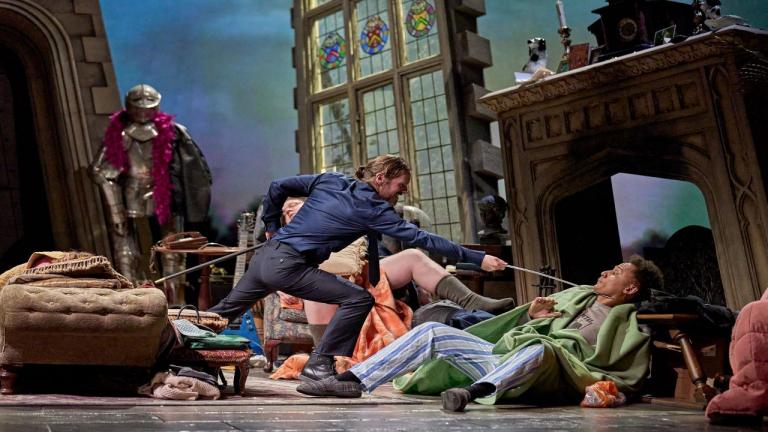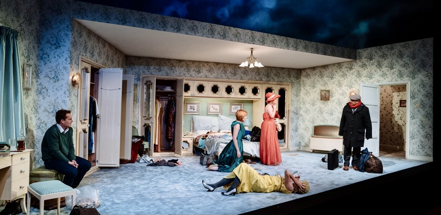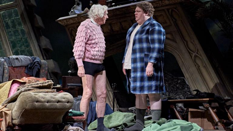 Social distancing prevailed on stage as much as in the auditorium. In the original production, the Lord Chamberlain’s office wanted no hugging but director Peter Hall persisted. Covid restrictions censored hugging this time around. A touch or a hug might have complemented the dialogue which, it has to be said, at times was wordy and bookish. Maybe some Pinteresque pauses might have helped.