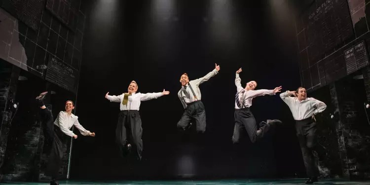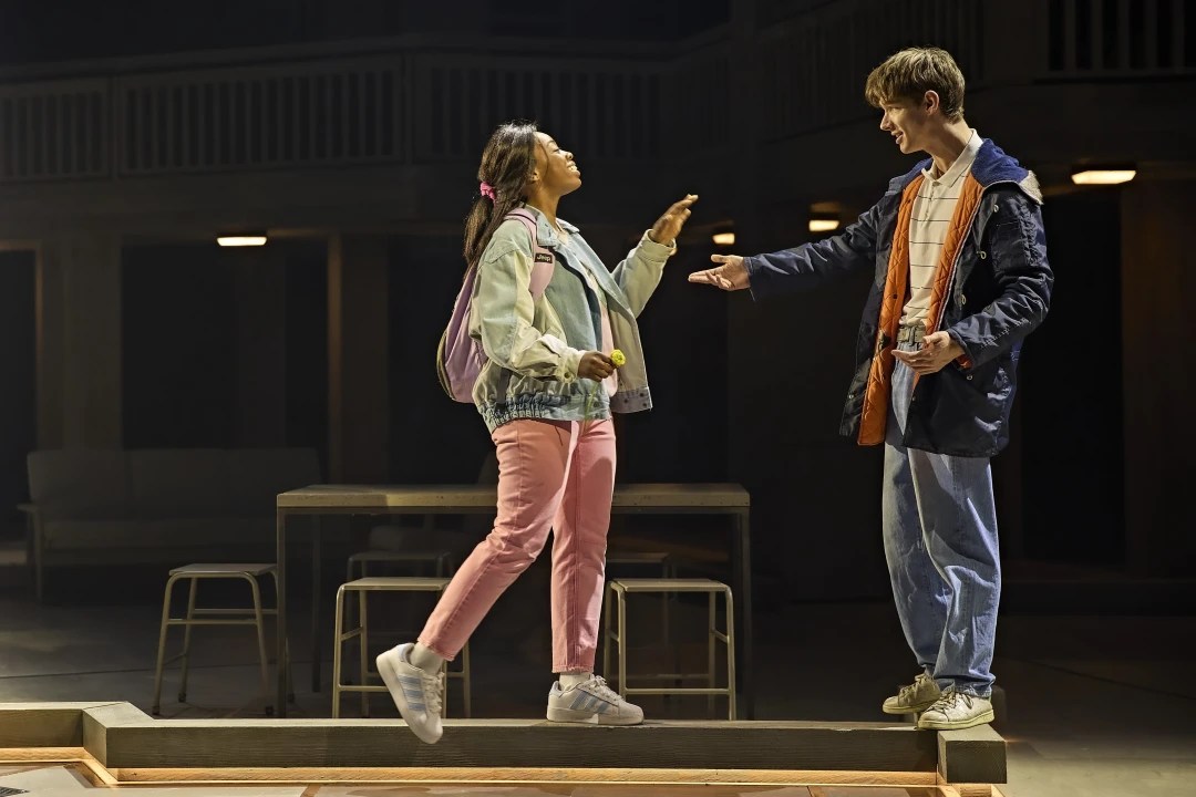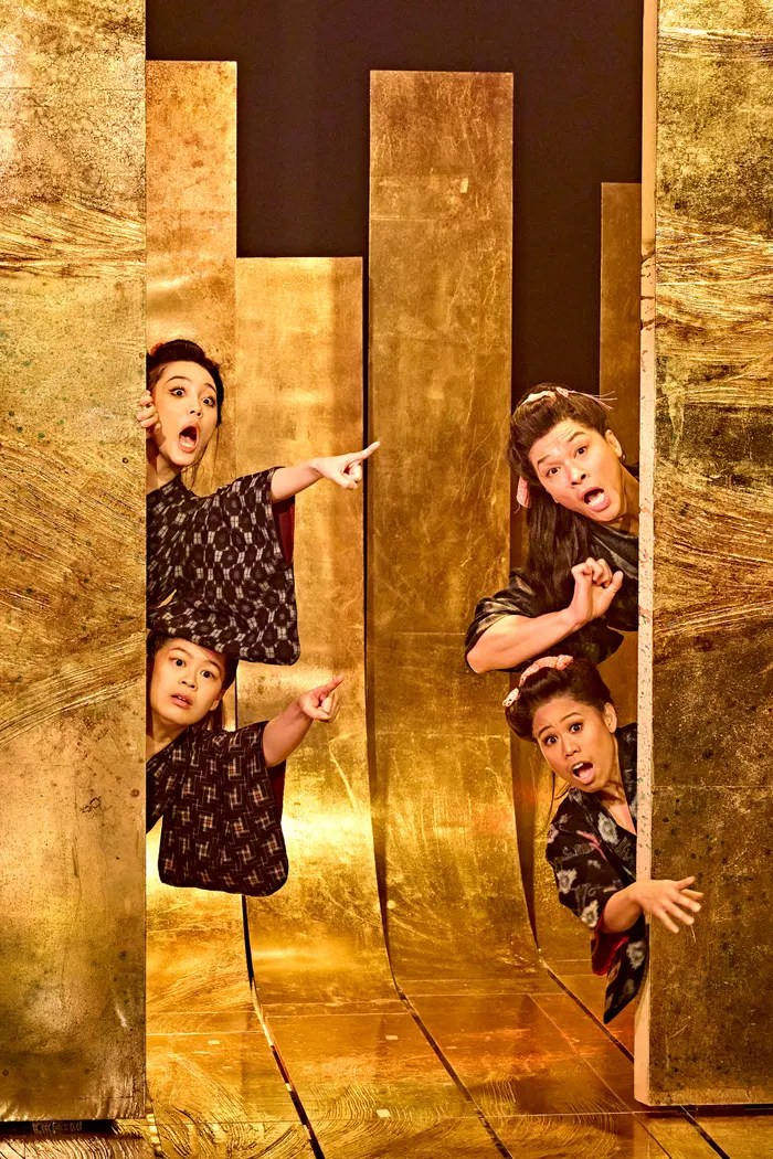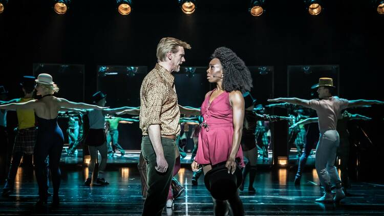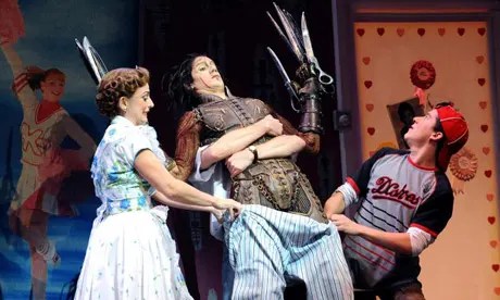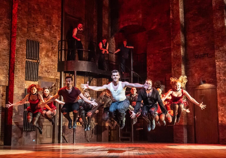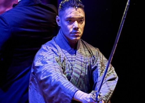 Director Max Webster clearly wants us to know we are watching a play. The set emphasises the acting space with an illuminated surround at both ground and ceiling level, and at one point the very visible stagehands even join the main character in a dance!