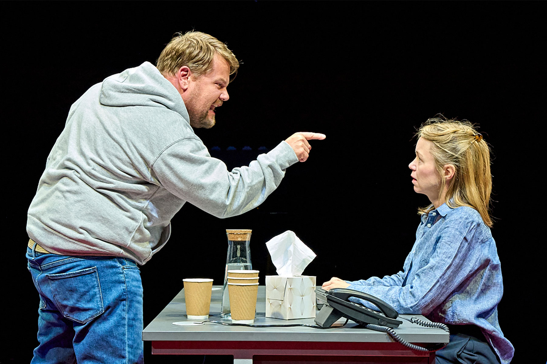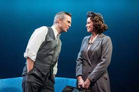A very “Donmar” production. Thirty-six scenes, the supporting cast of three playing more than 20 characters, a constantly revolving stage, with technicians rushing props and furniture here, there, and everywhere, and cameramen walking around beaming the two lead actors onto a sceen whilst they were performing. What could possibly go wrong!?