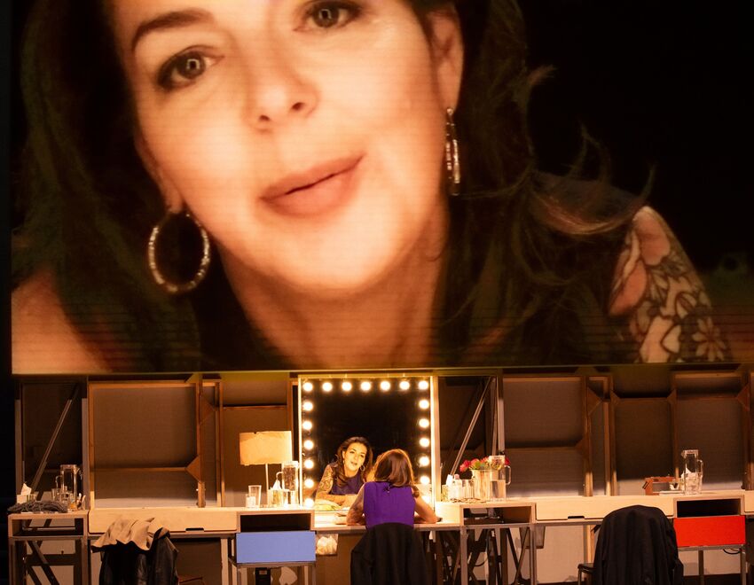 Ah yes, Opening Night, which has now announced an earlier-than-planned closing night. It’s a very odd musical mix of theatre angst and movie indulgence. All praise to everyone taking part – it seemed they all knew what was going on although we felt like onlookers not invited to the therapy session. Maybe no-one was brave enough to tell director Ivo van Hove, playing with his video cameras, that enough was enough. The big rear screen predominated so really we didn’t know whether to watch close-ups on film or the on-and-off stage-action. It helped having seen the 1977 movie a few months ago, and it seemed like madness to want to turn it into a musical. Now we know it was indeed a very odd decision. It had songs by Rufus Wainwright, most of which we enjoyed, especially well sung by Sheridan Smith and Nicola Hughes – play trailer above to listen. The performances were determinedly brave, but clearly it was not the sort of musical most were hoping for from Sheridan Smith. I feared the Group would be disappointed, but surprisingly on the coach home most said they were entertained by it….I was entertained too, by the talents involved and the open-stage presentation. Certainly the original John Cassavetes non-main-stream movie is an acquired taste, so maybe a smaller-scale show in a smaller theatre would have been more appropriate, without the pressures of West End expectations.
